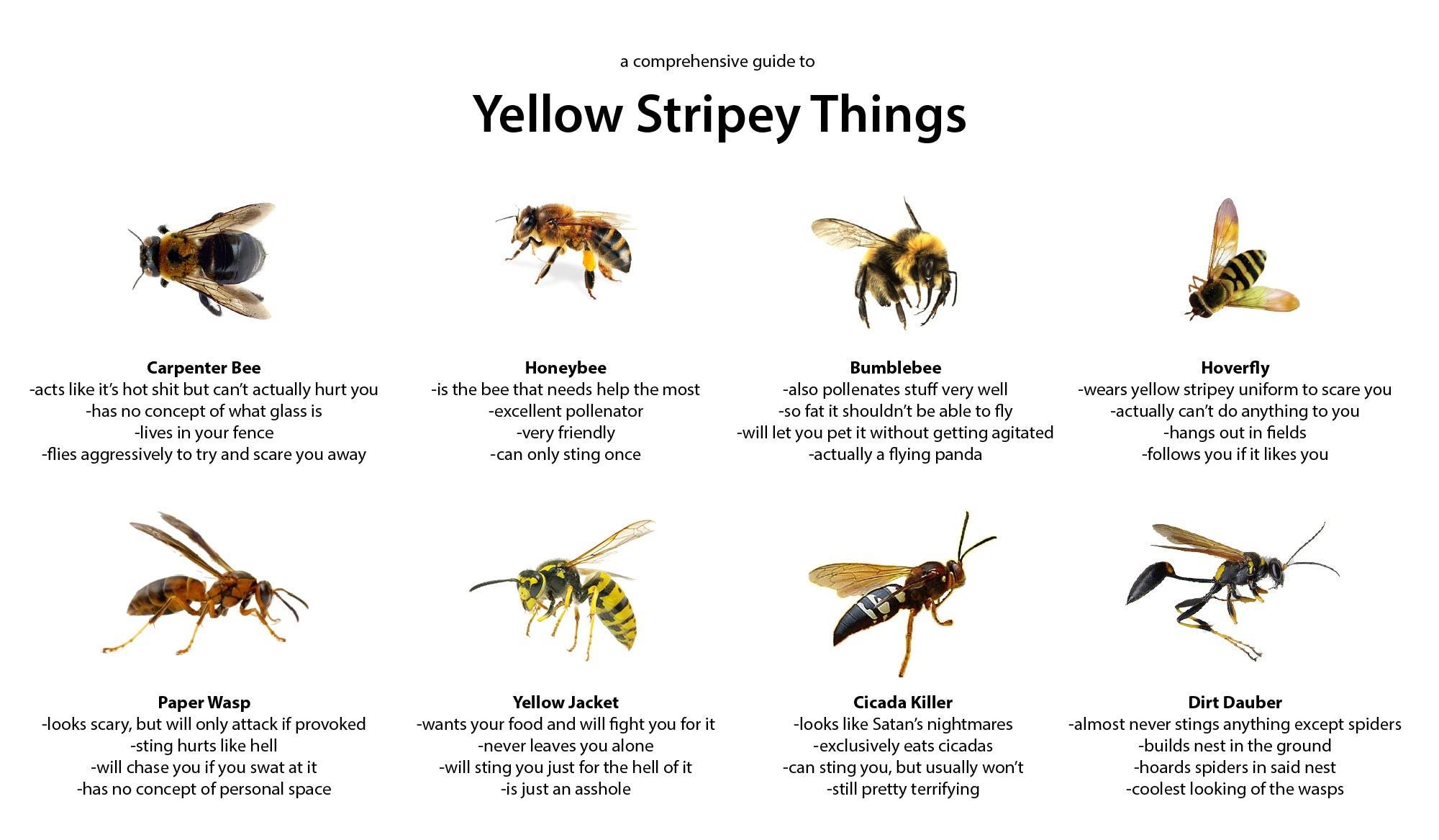 I have a long history with yellow jackets. They’re extremely common in Texas*, both outside the city (rendering the woods, in my opinion, completely uncampable–not to mention the ticks & chiggers) & in suburban yards, & are called by authorities “aggressive and dangerous” because they will sting unprovoked & even repeatedly.